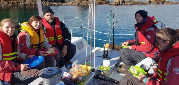 This is a hands on course that spends lots of time on the water. For on going out on the water dress warmly, even in summer. A wool or polypropylene base layer is a good idea, with at least one more warm layer on top. We provide you with a good quality set of breathable waterproof gear (pants and jacket) along with a lifejacket. A hat and sunglasses are also a good idea. Make sure that you have a strap or similar so that you don’t lose these overboard!